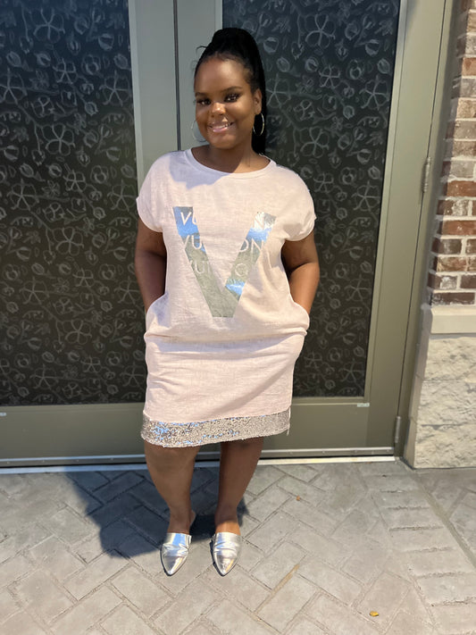 THE V SEQUIN T SHIRT DRESS | CHAMPAGNE