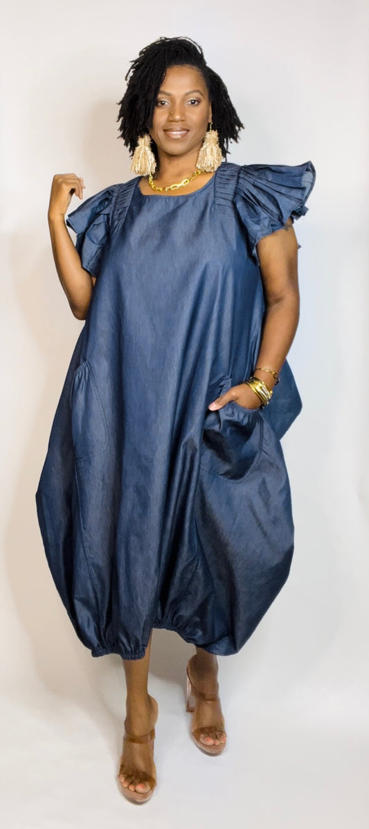 Sold outGOOD VIBES BUBBLE DRESS | DENIM