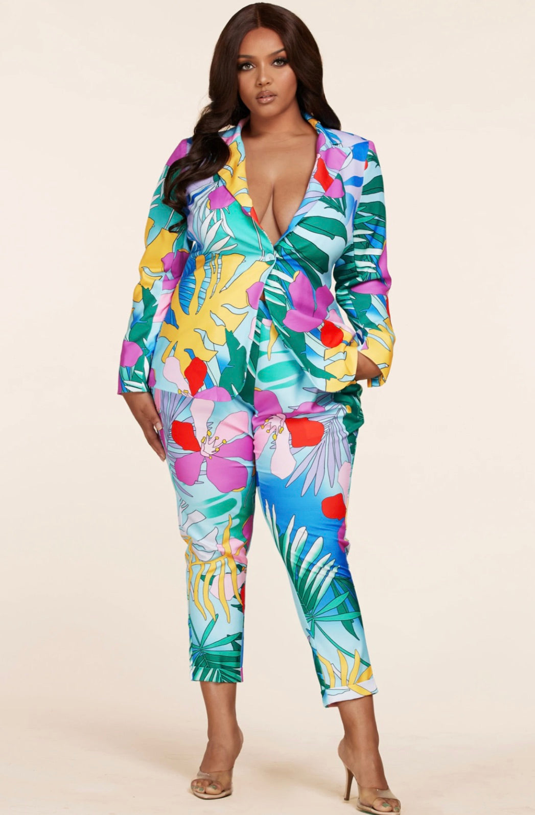 Go on vacay sitting at your desk in our eye-catching Vacay Me Pant Suit. It is a single-breasted blazer with notch lapel paired with matching tailored dress pants. Fits true to size.